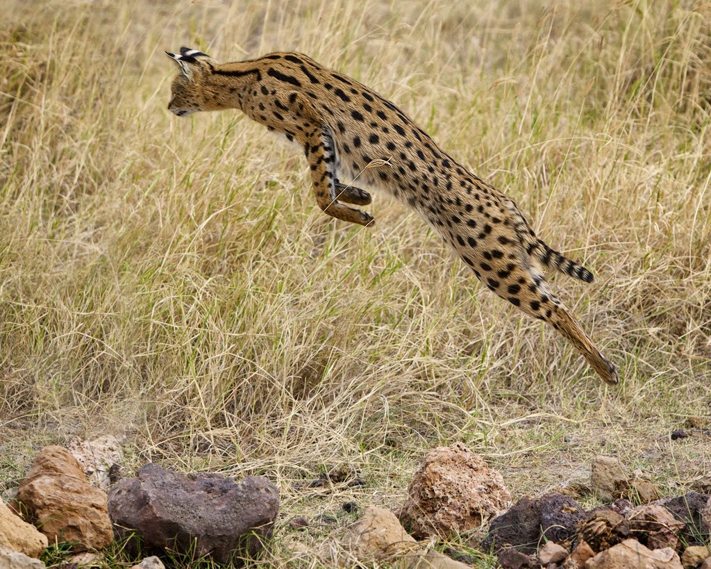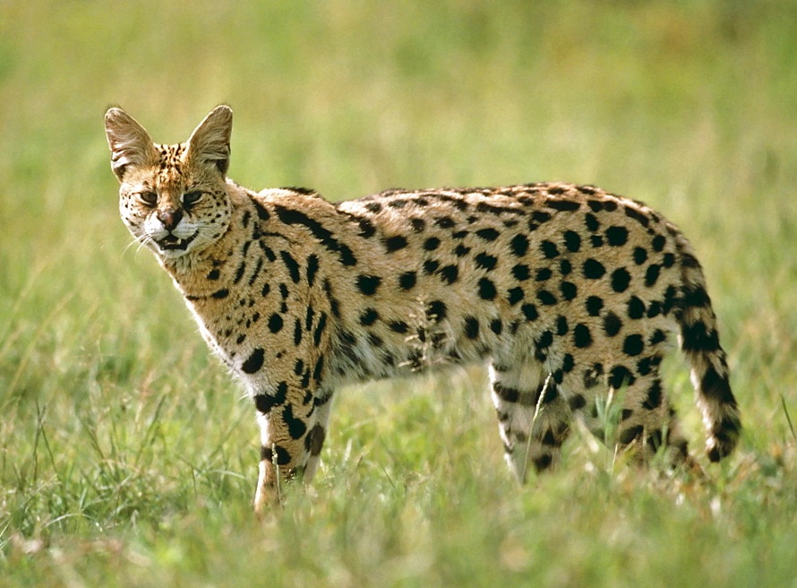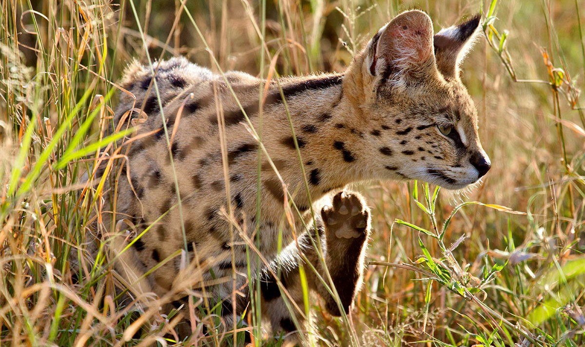 The African cat is a resident of the tropical regions of Africa, Sahara, Marroko and Algeria. Animals have a negative attitude towards open areas and prefer bushes and grassy thickets near reservoirs and rivers. Serval uses edges and open areas for movement, hunts in the morning and evening hours.