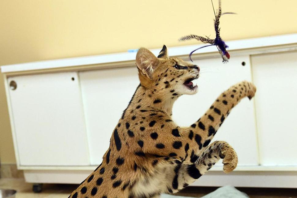 A pet can cause considerable harm to expensive furniture, wires, paintings and other interior items, which will be bitten, marked and nibbled. To prevent damage to the interior, experts recommend purchasing special toys for cats and dogs that the serval will be busy with during the period of activity.