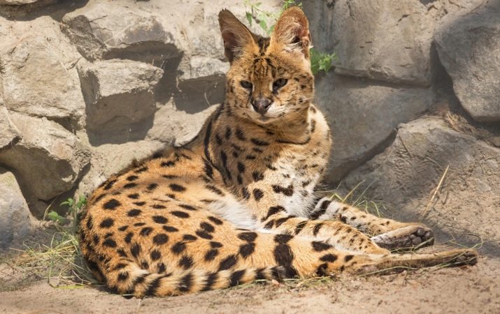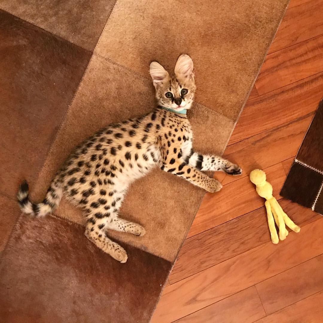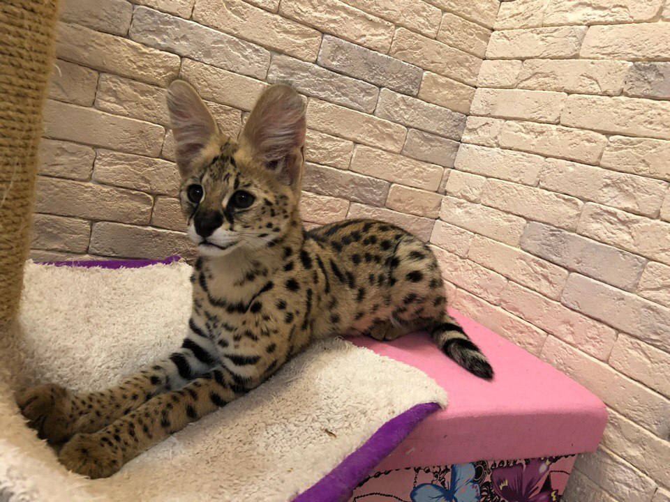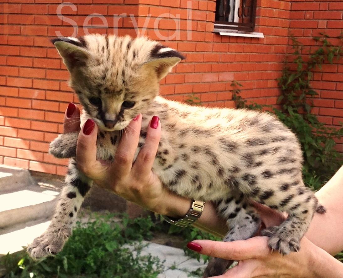 Serval, a domesticated wildcat, will be a spectacular and expensive purchase. A spotted large animal will look impressive in the leather interior of a luxury car or on a Persian carpet in the living room.