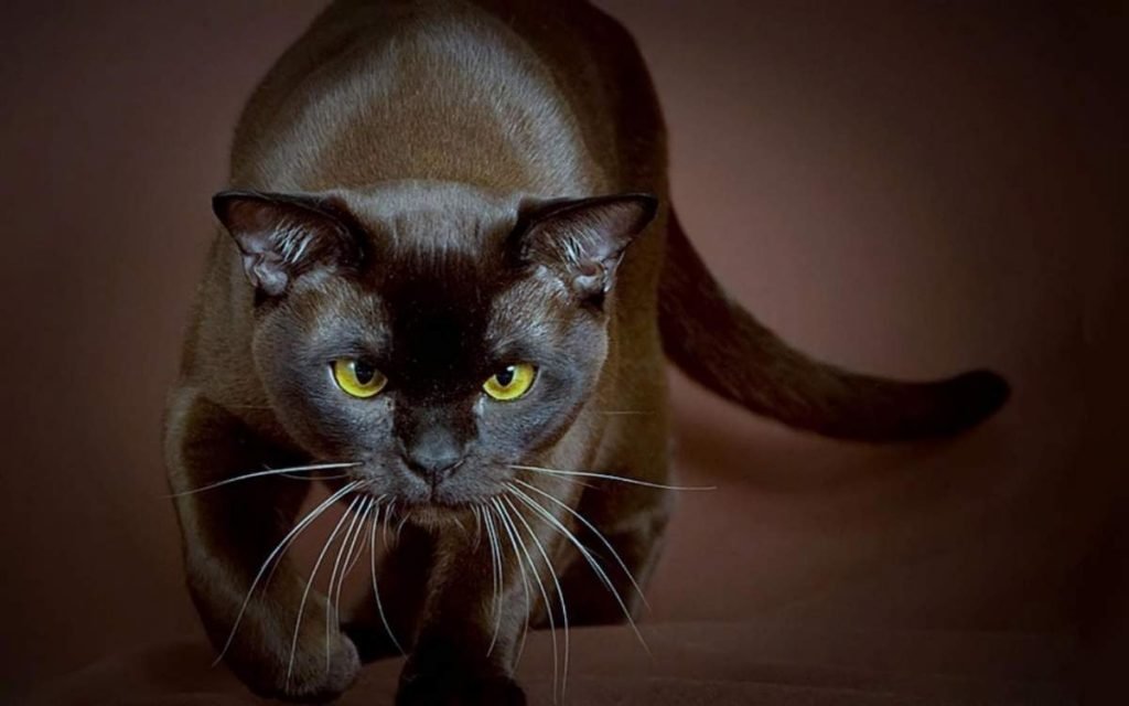 Burmese cats - strong and muscular. The breed originated in Burma, the year of breeding 1934. For short, they are called "Burmese". Have yellow eyes, brown coat color, that is, dark brown.