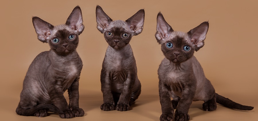 Devon Rexes are alien cats. Big-eared, narrow-pitched, with almond-shaped eyes. Devon Rex have a slender body. The appearance of these cats is as unusual as it is possible in principle. In addition to the original proportions of the body, they also have curly wool. Breeding a breed is not easy, since the principle of back-crossing acts in this situation, otherwise the sign of curliness disappears.