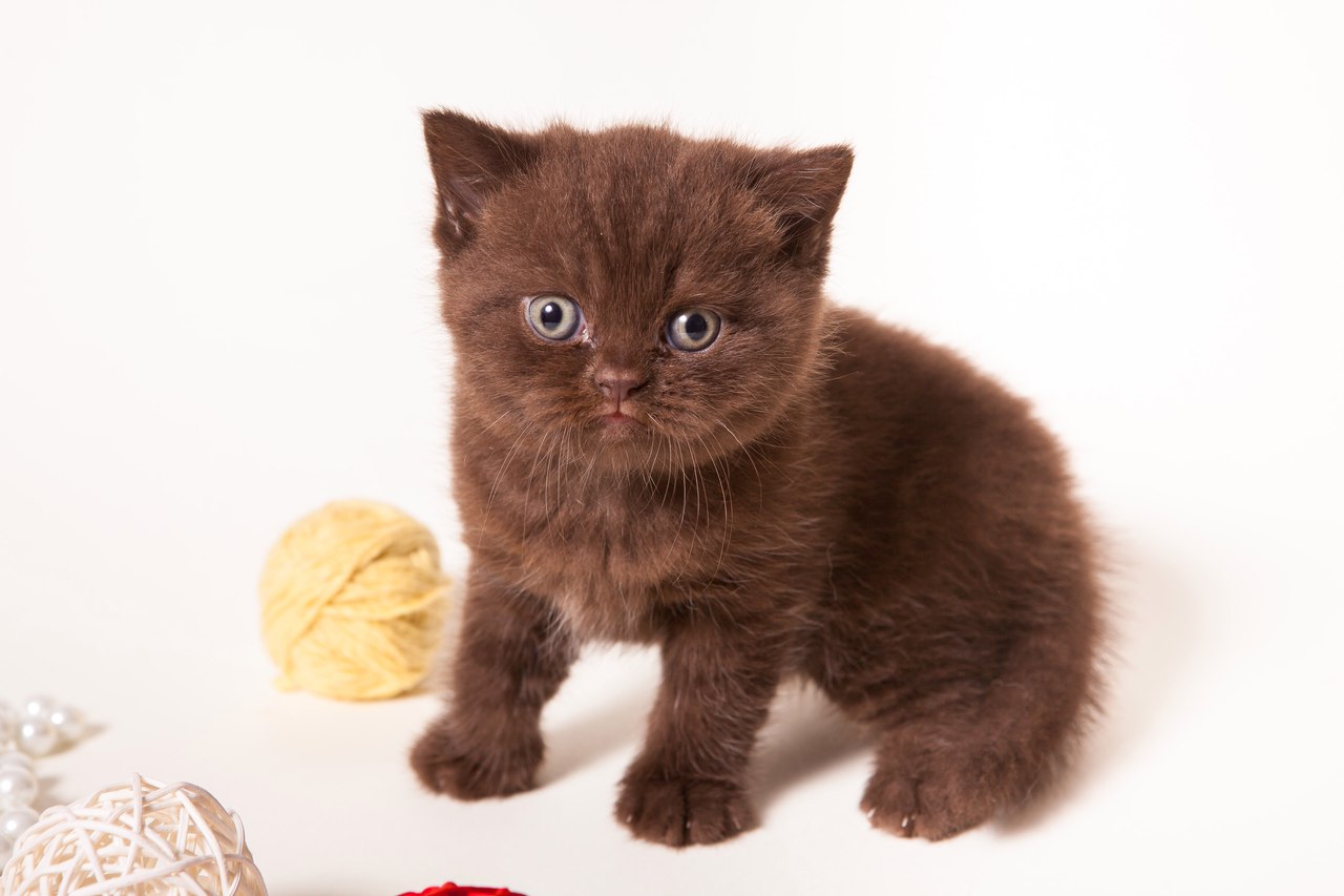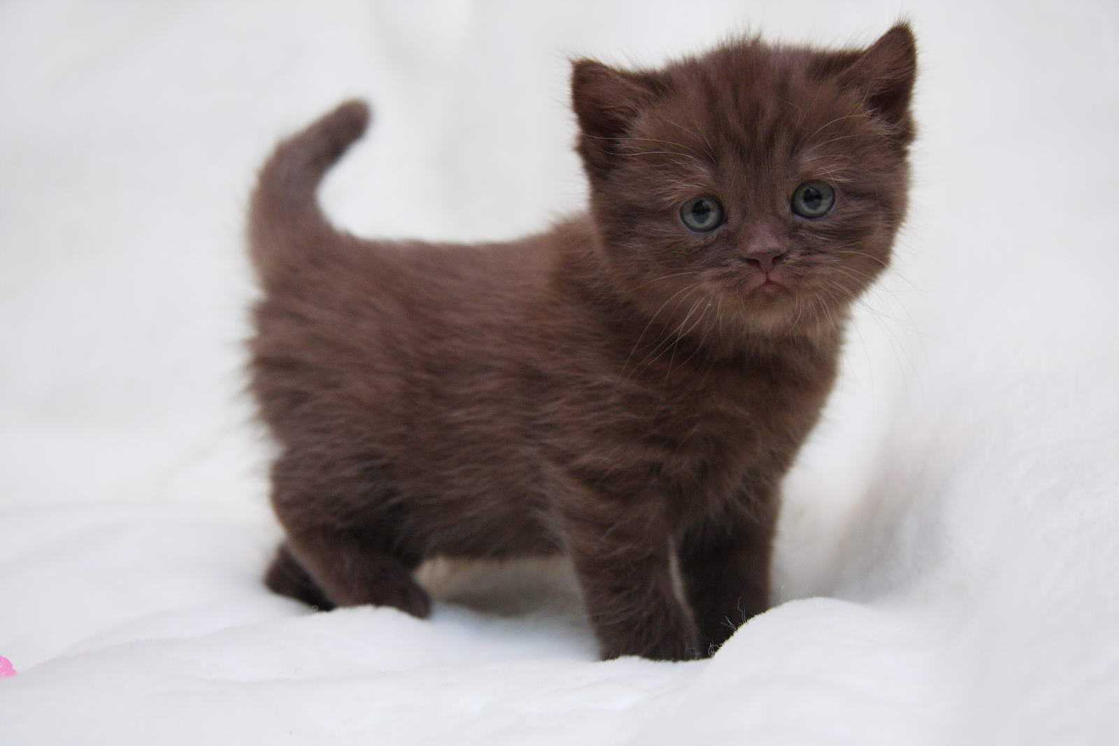 British chocolate-colored cats with blue eyes are unusually beautiful. They are plush in appearance and feel, and due to the color of their fur they look like little cubs. The British are short-haired, but their coat is unusually thick. Chocolate British cats have an average body composition. Color "chocolate" on the British is very deep, rich, evenly distributed. Sometimes it may have a brown tint. The uniformity of color is achieved for a long time - from one year to one and a half years. Chocolate British cat looks very "pedigree."