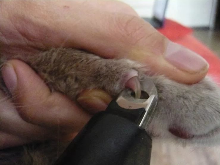 - Several times a month, the pet needs to trim the claws. This should be done carefully, without damaging the blood vessels. It is best to teach the cat to this procedure from early childhood, it will facilitate further care. It is desirable to cut claws with special scissors, which can be purchased at any pet store. Claws will also help to clean the claws.