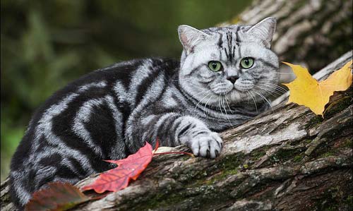 - the eyes are round, large, green and yellow, there are also blue;