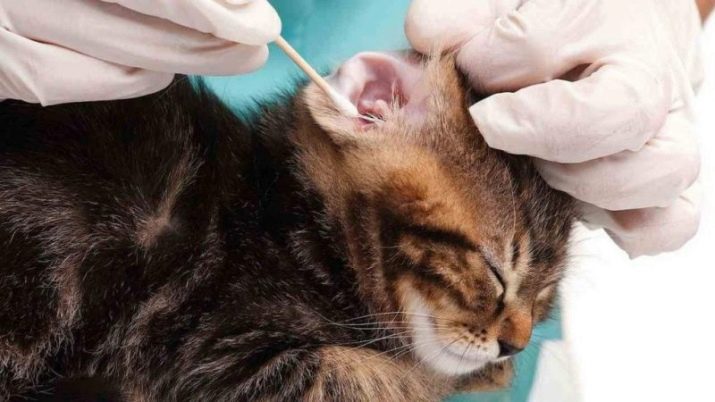 - Ears animal cleaned with cotton buds. Processed inner surface of the ear. Do not descend into the auditory canal during the procedure.