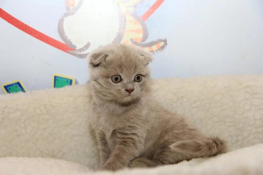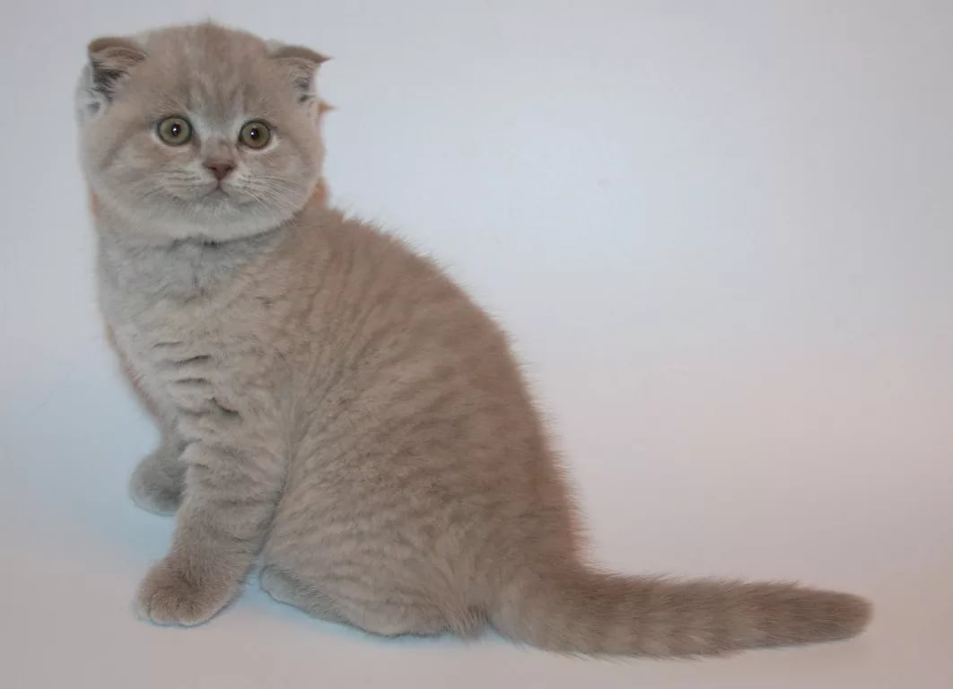 One of the most unusual colors of Scottish cats is mauve. This species belongs to the type of solid. Lop-eared kittens of lilac or lavender color look very tender and resemble forget-me-not in color.