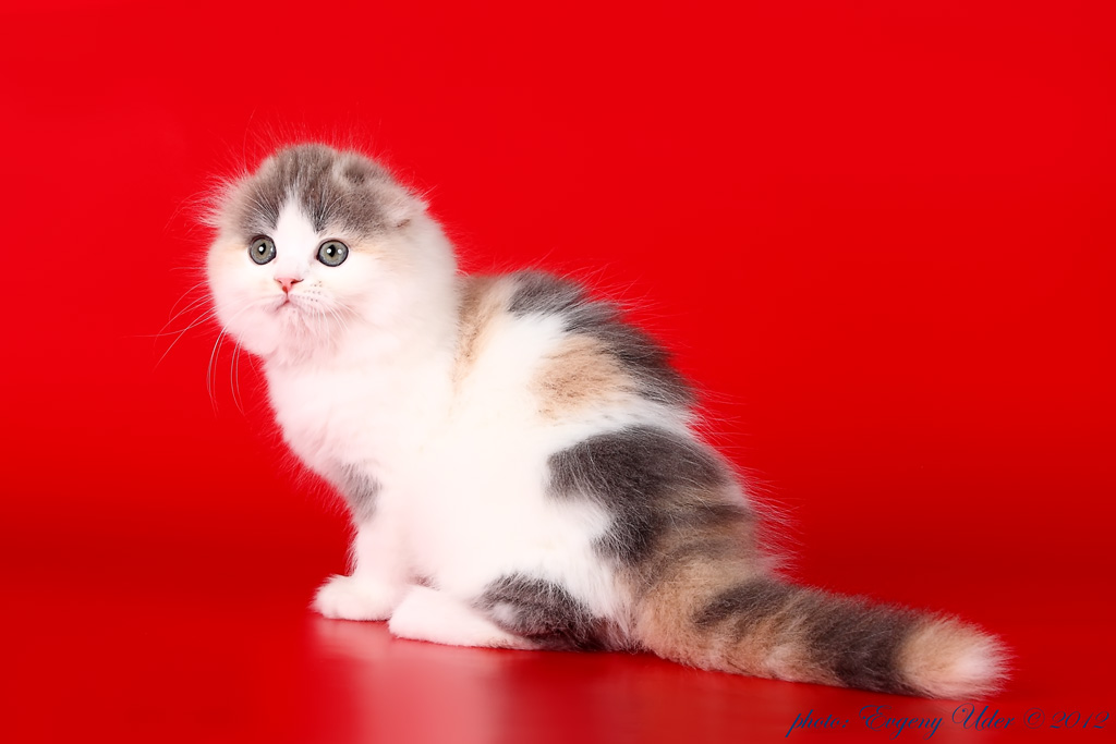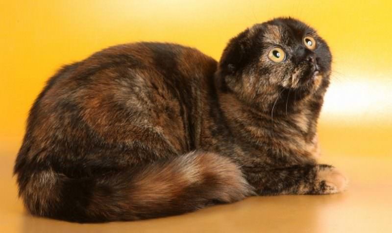 The name of this rare color comes from the English word "turtle". Coloring form spots of dark, red or cream color. They are black or chocolate red, blue or lilac-cream. In this case, the colors are evenly distributed, so they should not be confused with tricolor cats. Normally, this color is only in females. If a male tortie scottish fold is born, this is the result of a mutation, and it will not produce offspring.