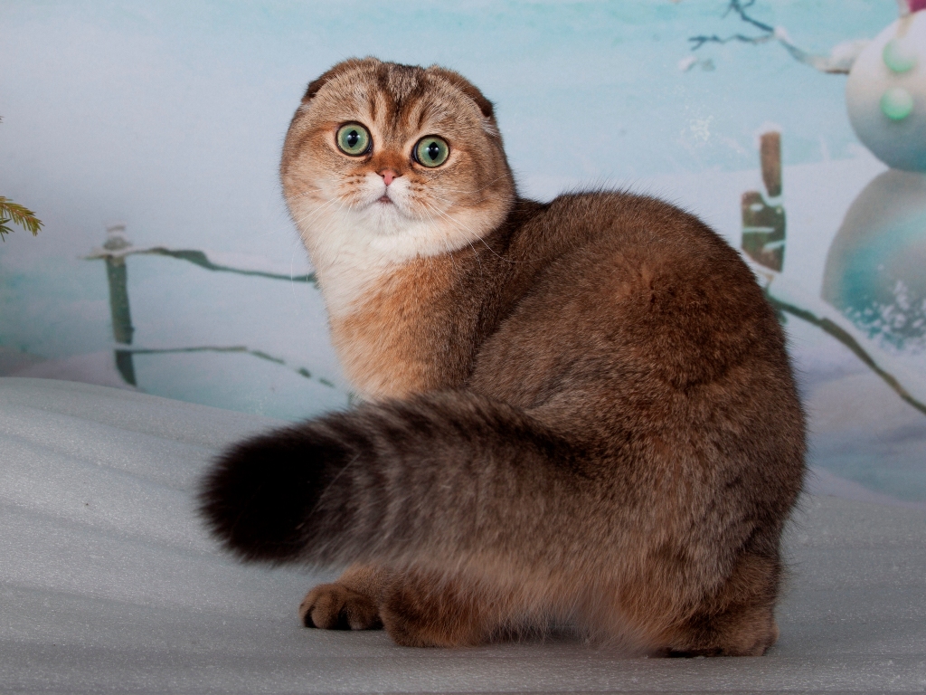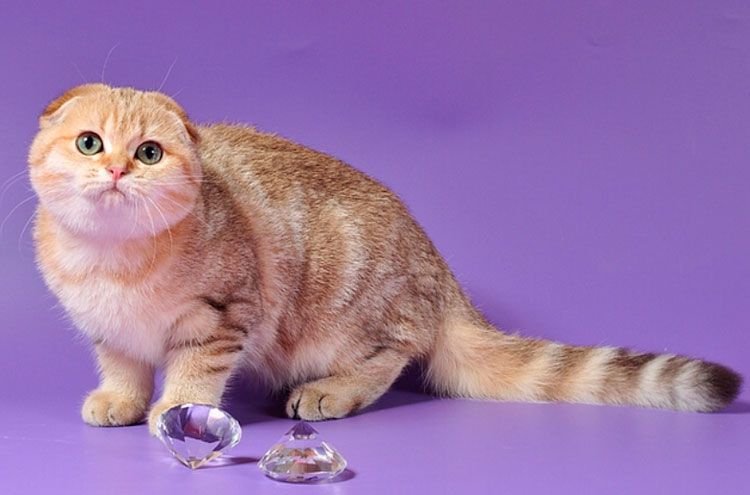 - Scottish folds of white, red, black, blue, cream, smoky, shaded colors, red chinchilla, bicolor and tabby red, brown, blue and cream are often inherent in the eyes of golden color.
