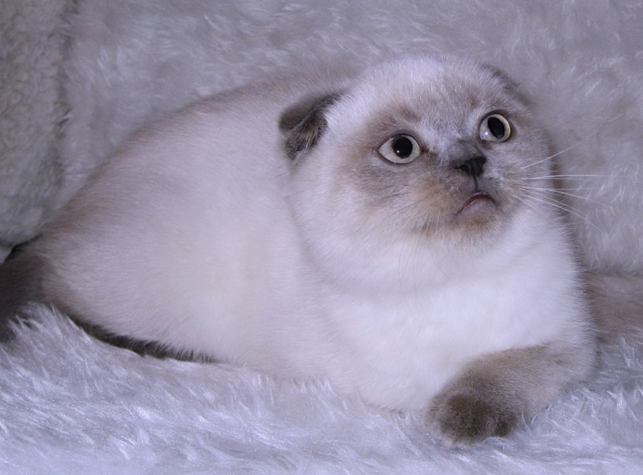 It is because of such a game of genes from black turned a bluish color, from chocolate - purple and so on. Even during the formation of the color, such factors as the degree of coloring of each hair and the presence of spots and patterns are important. Among the Scottish folds are also found pure-white individuals. This means that they do not have a gene that is responsible for the color and suppression of a gene of a given color by other genes.