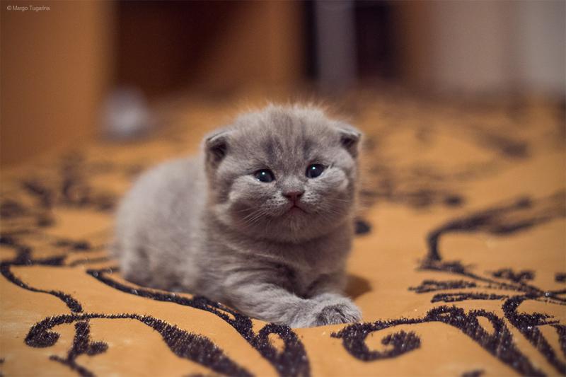 Often, the ears of the Scottish Fold kittens begin to acquire their unusual shape only after a few weeks. The owners love these plush cats for their good nature and obedience. The Scots look very cute, and the kittens do not leave anyone indifferent at all - their faces with large round eyes and a flat nose look so charming.