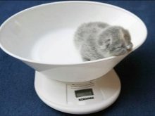 Subsequently, the weight of each kitten is close to the age norm of the first year of life, but it is necessary to provide all kittens with additional feeding when the mother cat produces little milk. The typical weight of Scottish kittens at birth is 60-140 g. If the cat is provided with an adequate diet, rest and walks, then the kittens will not have a critical shortage in weight.