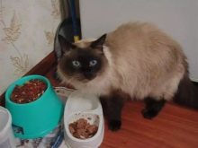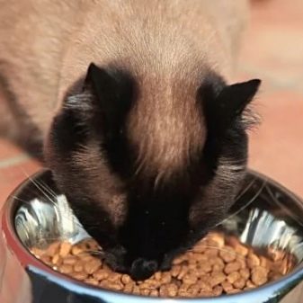 When feeding cats of Siamese breed, they should not be overfed. Feeding should take place at the same time, morning and evening. Two meals a day is enough for an animal, provided that it is balanced in the number of proteins, fats and carbohydrates. After 7 years of age, the pet must be transferred to 3 meals a day.