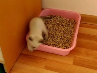 As soon as you bring the kitten to the house, take it to the tray and allow your pet to study it.. After that, when you notice that the baby has begun to look for a place to meet its natural needs, take it to the tray again.