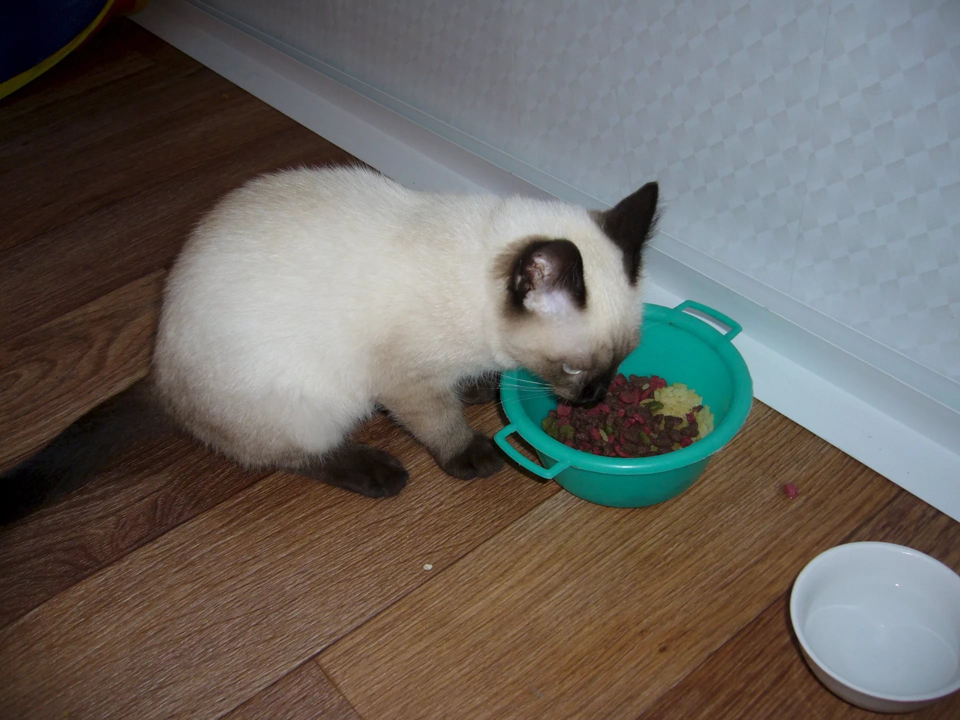 Siamese cats are picky about food and do not eat what they do not like. A small kitten can be accustomed to certain types of feed, but if you took a grown-up cat into a house, be prepared for the fact that she has already developed taste preferences and will not be able to change them. The diet of a Siamese cat consists only of balanced dry food, or it can be natural products that can be combined with dry food.