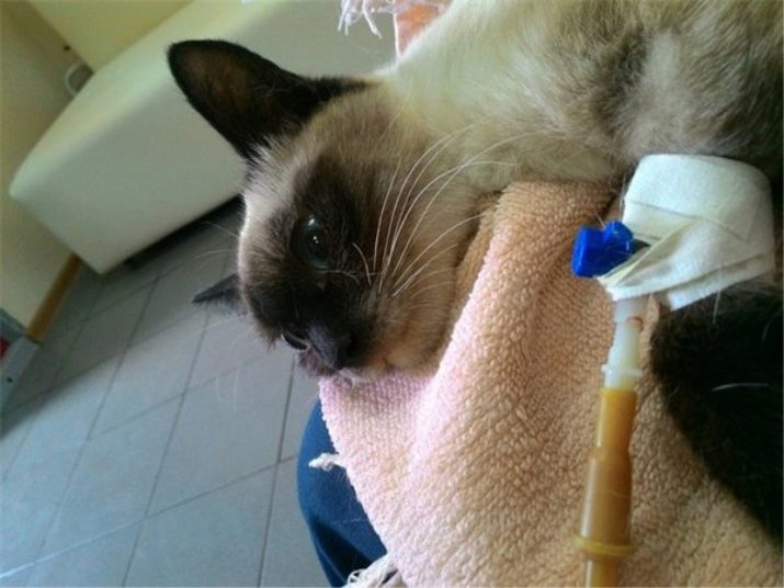 - Rabies - A disease of viral etiology, which is transmitted by contact with the saliva of a sick animal. Getting into an open wound with a bite, the virus enters the brain, where it actively multiplies, causes foci of inflammation and enters the region of the salivary glands. Under the influence of the disease, the behavior of the animal changes - the cat may become very aggressive or too affectionate, while it will have a strong drooling. A sick animal will lose balance, and its muscles will begin to twitch noticeably. Treatment for this disease has not yet been found and the probability of death is 100%.