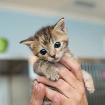 At birth from one mom you can compare the mass of kittens even without special devices. Just look at them. If the kitten is thinner than the others, then a special observation is required: behavior, feeding, and sleep. If it is visually unclear that the kitten is worse than the others, then you can look at how it is applied to the chest.