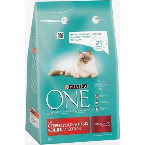 - Purina One. This brand offers not only a variety of flavors, but even a line of medicinal feeds that differ in the composition of components, which can be used in a more subtle selection of your pet's nutritional support after sterilization. Just like the two previous feeds, you can buy it at almost any supermarket. Contains vegetable components (gluten and wheat proteins), which, according to veterinarians, can sometimes provoke indigestion disorders.