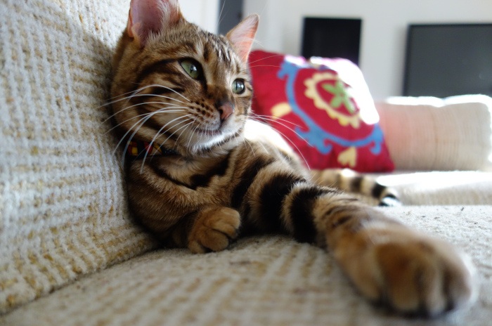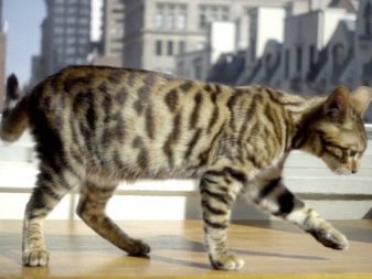 Provided that the animal lives in apartment conditions on a high floor, the owner must secure his stay on the windowsill and balcony. The fact is that this breed does not know the feelings of fear and caution, so it can fall out of the window. Toygers are easy to train, they just learn new information, as well as prohibitions and permissions. An older cat should start raising, otherwise it can become a brazen manipulator.