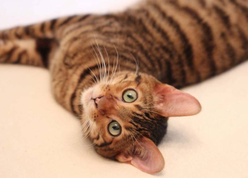 Like any other pet, a toyger is prone to a quick set of excess weight. Pet obesity is not a result of overfeeding, but the fact that the owner gives the cat food not 2 times a day, but more often, which is unacceptable for this breed. Feed the pet in the morning and evening. In nutrition, the main thing is balance. As well as an exotic creature needs trace elements that will support the bone system.