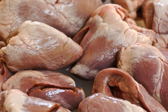 - meat in the form of beef, chicken, offal;