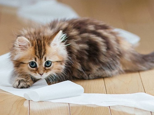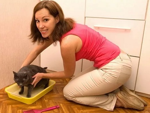 Such a host behavior will frighten the animal. The kid will think that it is impossible to do this in the house. And since he will not be able to endure forever, he will hide. Puddle or excrement should be collected with a napkin and placed in a tray. After that, the kitten itself should be placed in the tray with its paws so that it smells and understands where the latrine is located.