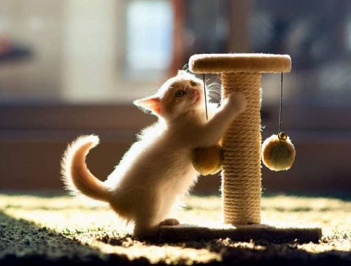 Surely, many are familiar with the situation when cats destroy not only the upholstery of upholstered furniture, but also wallpaper and even clothes with claws. In order to prevent this, it is necessary to purchase a special device, also called a kogtetochka, for a small kitten. You do not have to grab the kitten and scratch its paws on the device: often enough to play alongside, and for this, the claw can be part of the game complex. Kogtetochka should be in a kitten by 5-6 months.