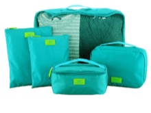 Some designers offer immediately a set of travel bags for cosmetics. It represents a few cosmetic bags of different sizes and for different purposes.