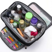 The last kind of travel cosmetics is hiking. This is a kind of cosmetic bags that collects all kinds of bags. The model has a large size, comfortable handles, soft material and unbreakable mirror inside. It is very convenient to use for travel.