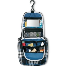 Famous German company Jack Wolfskin produces classic travel cosmetics. The mirror they are equipped with is velcro. It is simply removed and hung back. Cosmetics bags have zippers, mesh pockets and many other departments that help sort out all the toiletries. The material with which such bags for cosmetics are made is practical - this is Armatech Plus 600D. Fabric differs thin weaving. The cosmetic bag has a hook for hanging.