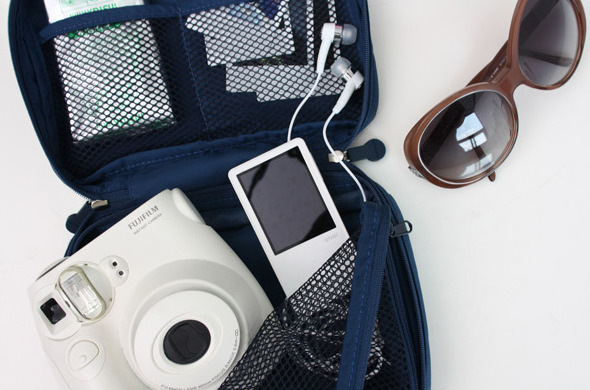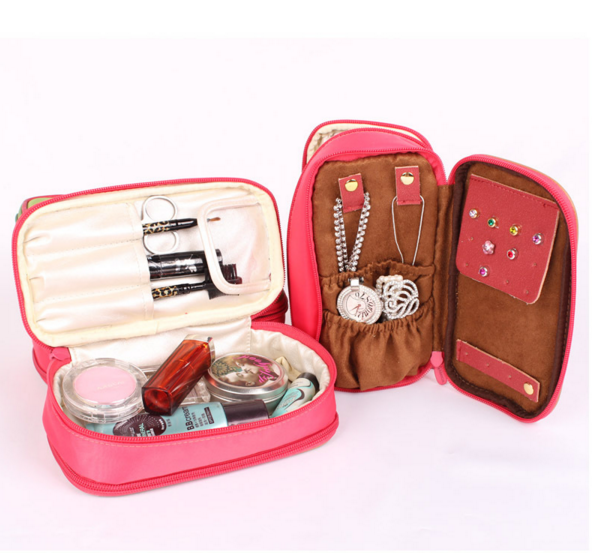 An organizer is a travel bag that has more compartments than a regular one. It is designed for cosmetics and documents. You can also put medicine in it.