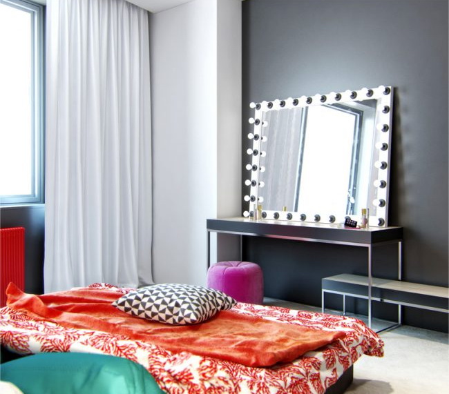 When electric lighting mirrors can be used incandescent lamps, halogen and fluorescent lamps. The advantages of the first are their low price and availability of choice, although they often fail. Halogen more expensive, but safer and more economical, can be used in rooms with high humidity (for example, in the bathroom). Fluorescent lamps are characterized by white cold light, which is not suitable for everyone (eyes can tire of it).