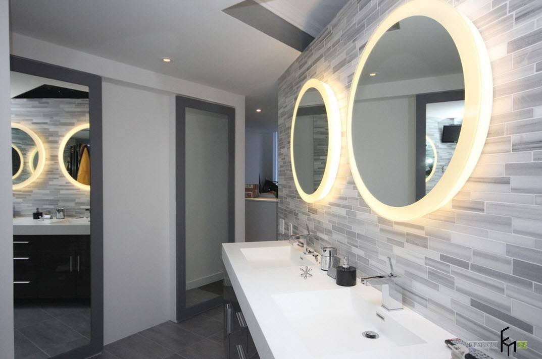 There are also models where using the touch control you can adjust the brightness of the glow. Such mirrors are often used as a night lamp or desk lamp.
