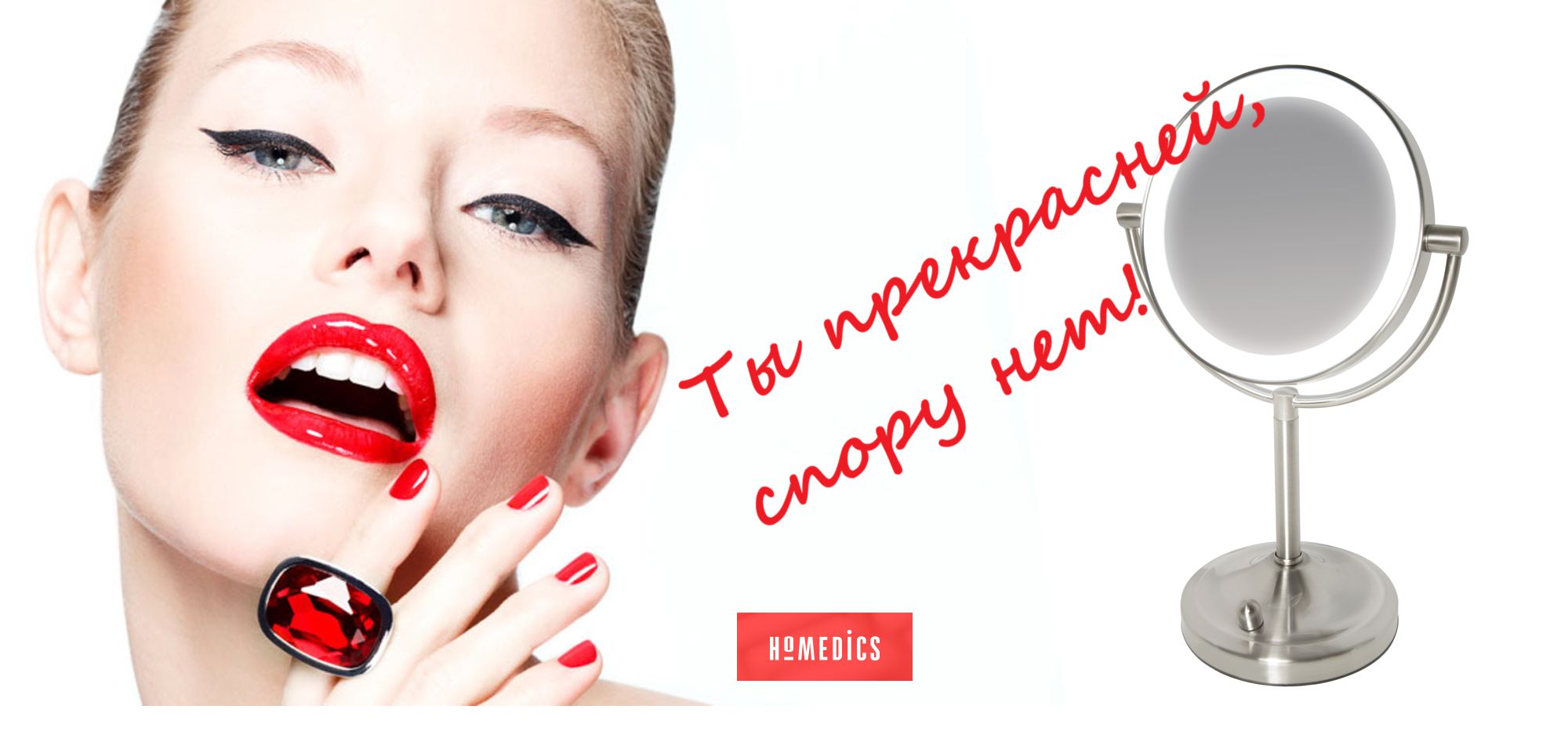 - Mark Homedics Based in the USA, its products are characterized by solid construction. All models are rather weighty, have a high-quality mechanism that allows you to adjust and fix the angle of inclination, table mirrors are equipped with anti-slip stand, which gives them additional reliability.