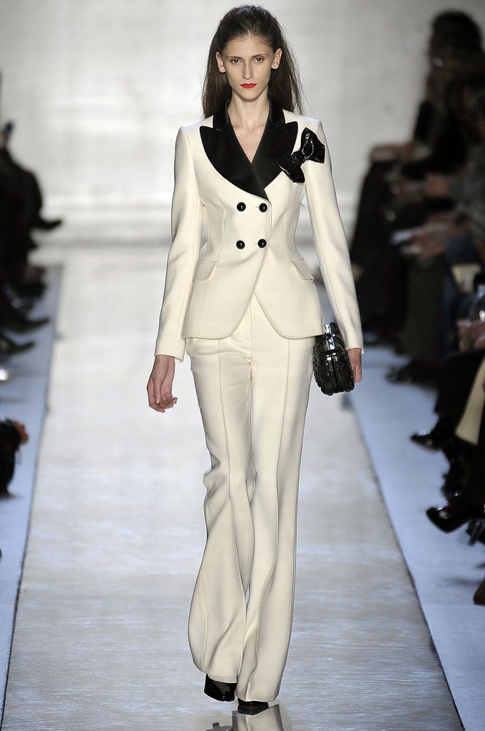 Women's classic suit appeared around the middle of the XVII century. At first it was a set of clothes for riding, later the suit moved to the everyday women's wardrobe. Initially, the jacket was carried out in a straight free silhouette, and only at the beginning of the 20th century more feminine fitted models began to appear.