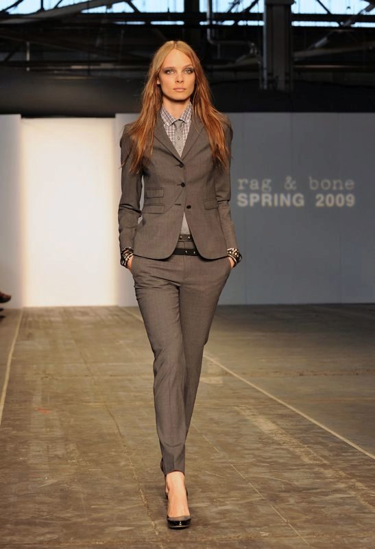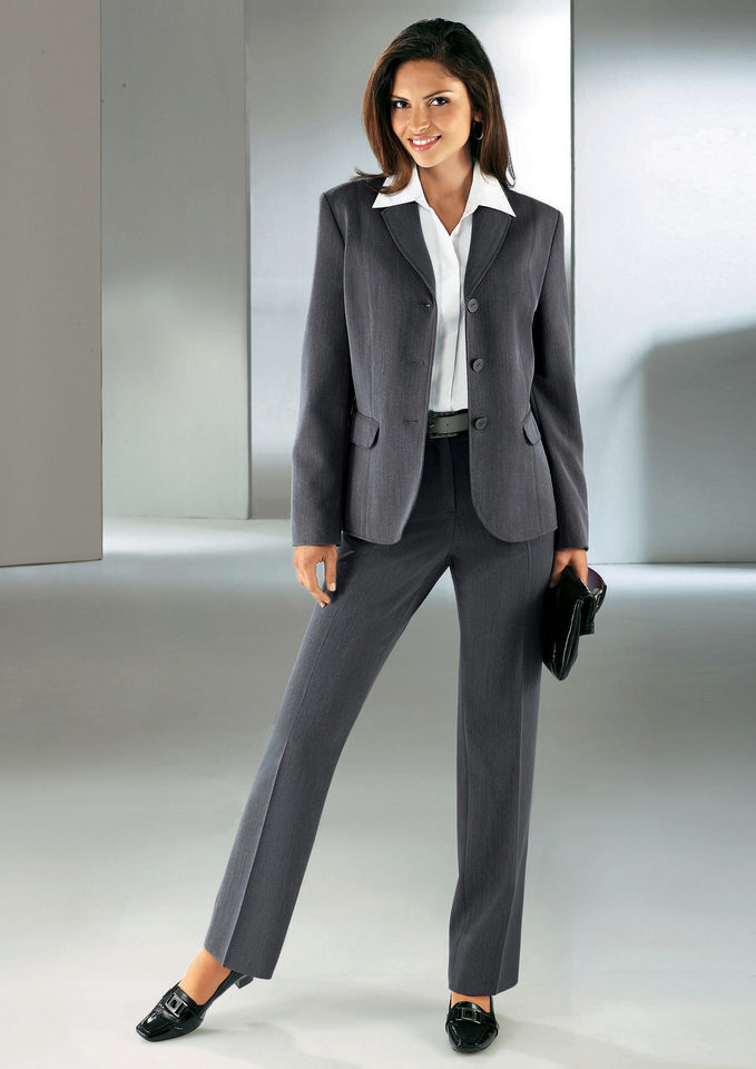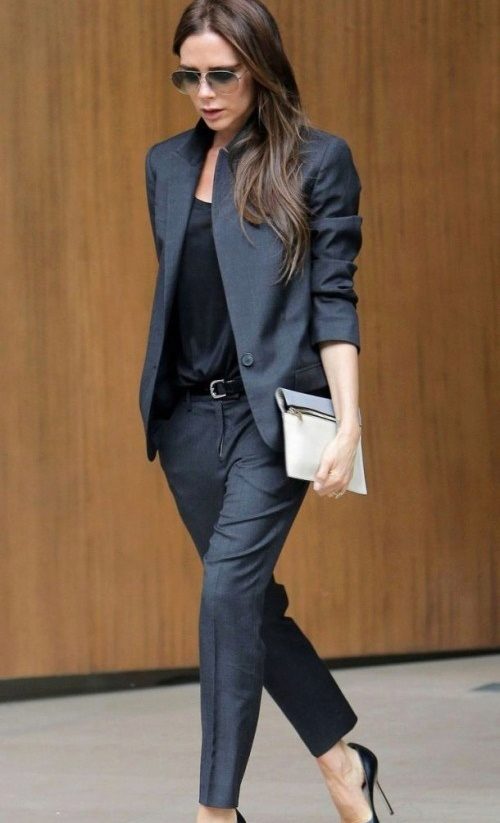 Business suit involves a combination of items of one or two contrasting colors. Most often it is a combination of light top - dark bottom or vice versa.