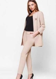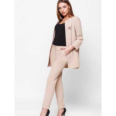 For admirers of a purely feminine style, the priority is the “skirt and jacket” option. So, the most popular today are variants with a pencil skirt, the length of which barely reaches the knee. The jacket is often chosen with or without an English collar.