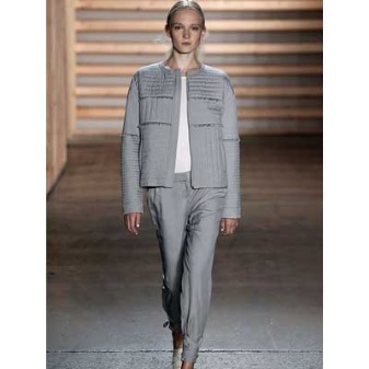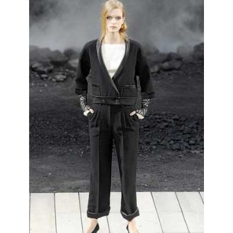 For those who like modern clothes, Chanel offers both options with non-classical skirts, for example, pleated, and sets with shorts or tight pants. In this case, the design of the jacket is possible shawl collar, trim using fringe and other interesting innovations.