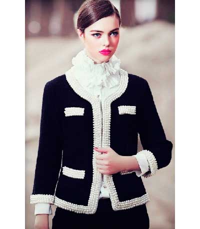 However, black and white are still considered classic - both individually and in pairs. The last option allows you to achieve a bright contrast - a very important element in a suit from Chanel.