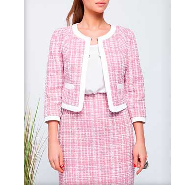 At one time, the first lady of the United States, Jackie Kennedy, became one of the most important popularizers of the tweed skirt suit from Chanel.Pink suit, which became the hallmark of Jacqueline Kennedy, is now forever associated with the modern business woman.