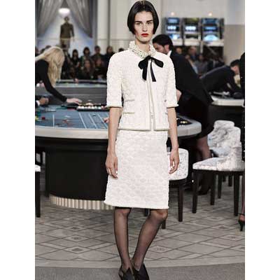However, this is not all. Modern collections of the famous brand delight their fans with a variety of colors for every taste. So, you can find your favorite tweed suits, made in pastel colors (cream, lemon, mint, lavender) with a constant contrast in the decoration (most often it is white). Fantasy designers also provides a rich selection of costumes in bright colors.