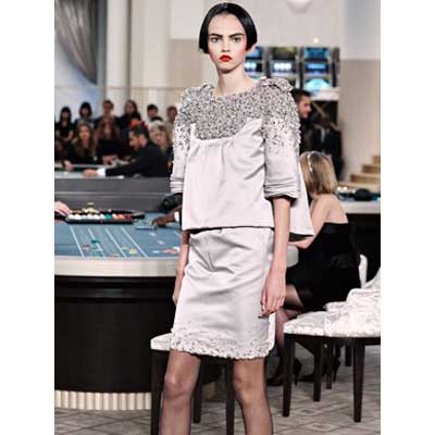 This trend is characterized by short skirts with a trapezoidal or narrowed cut. The belt is overpriced, the jacket is extremely short, maybe even the bolero. The three-piece suits consisting of a skirt or trousers, a jacket and a top made in the same fabric are very loved by the young generation. Also fashionable today can be called a set of dress-case and a shortened jacket. Chanel youth collections are different from the classic ones by the fact that they often deviate from the traditional tweed material.