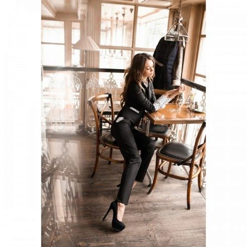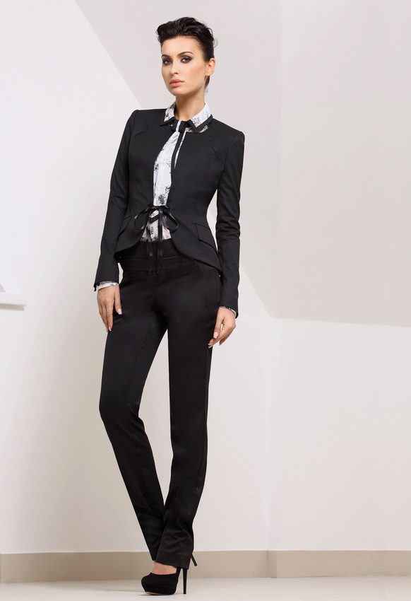 Business jacket is a classic - it is a conservative style, close to the male. Most often it is a double-breasted jacket, fastened with two or three buttons. A more feminine variation is a fitted jacket with one button and a round turn-down collar or a stand-up collar. Such a style seductively delineates the bust and waist, leaving no doubt that in front of you even a business, but a lady.