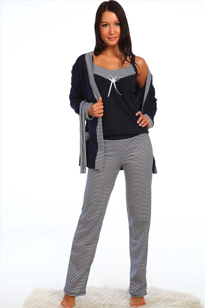 Home costumes are no less popular than for sports or office. They can always feel comfortable, but neat. Depending on the temperature in the house, you can choose different "three" - T-shirt, shorts and pants or trousers, sweatshirt and vest. Many beautiful costumes for the house are offered by the Russian brand Marina, a company engaged in stylish and inexpensive knitwear.