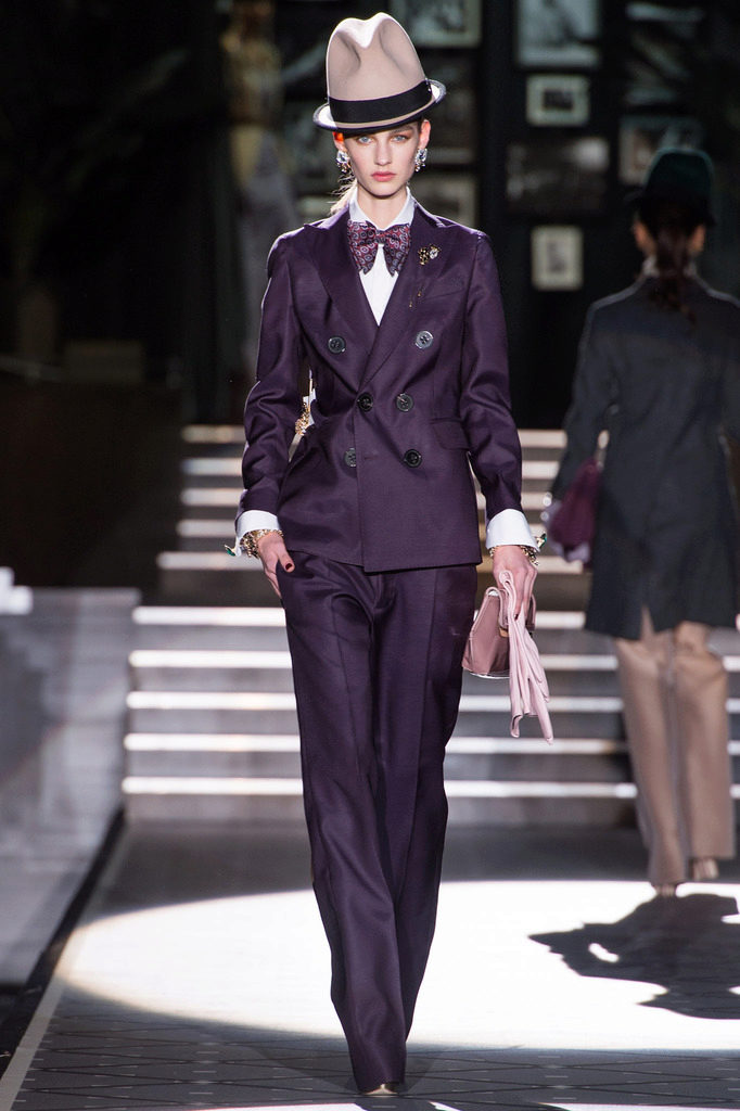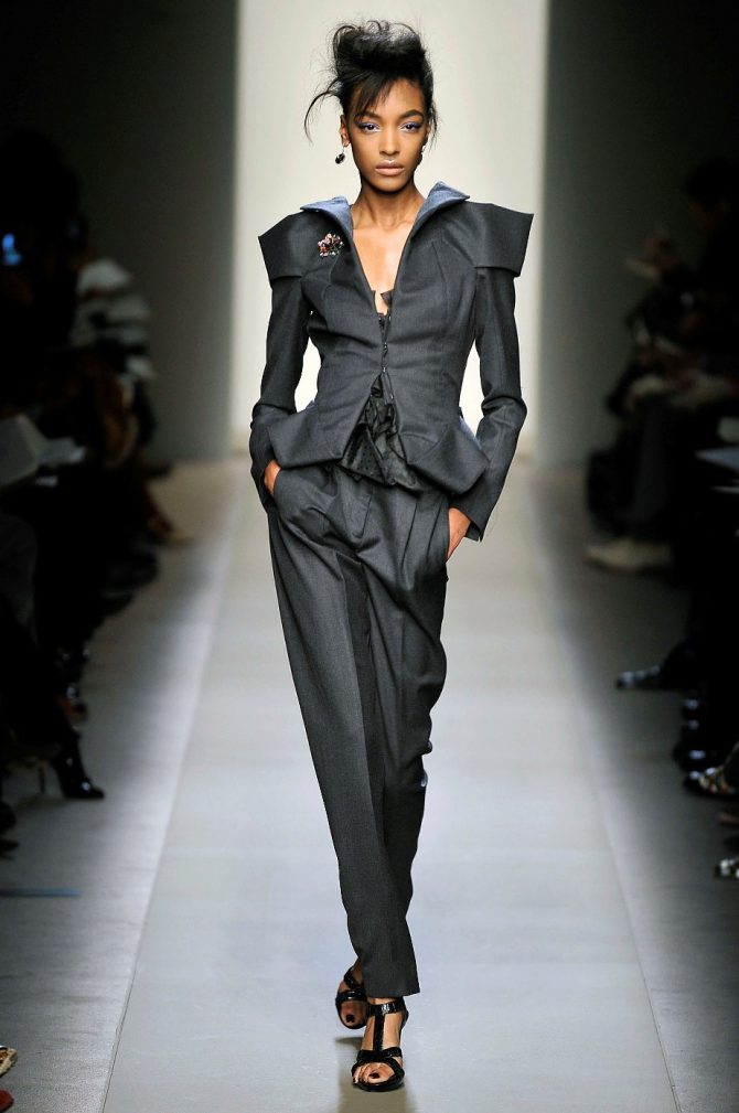 Three-piece suit, the creation of which designers were inspired by riding clothes. In the classic version is a jacket with a collar and lapels, straight skirt with a fold at the back and a striped vest. Today, the style has slightly changed: the skirt has become more clinging to the hips, the shoulders of the jacket have become soft, and the collar can be of any shape or completely absent.