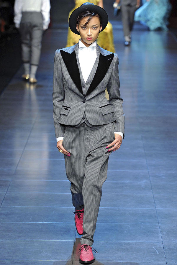 Moreover, the costume is more associated with the strong half of humanity, worn on the lady, he experiences an amazing transformation - discreet shades, clear cut and lines only emphasize femininity and fragility, making the woman sexy and elegant at the same time.