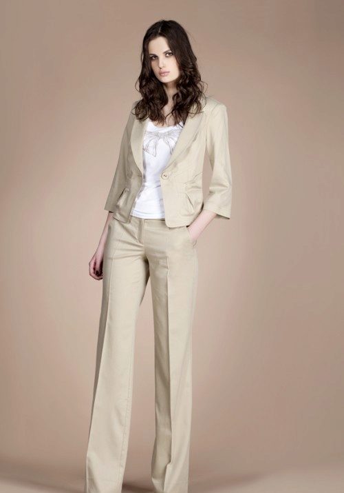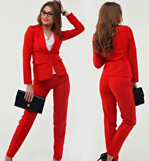 The scarlet three-piece suit is an outfit for a bold, self-confident lady. Red is also most often chosen for the evening event, but more muted shades: wine, burgundy, garnet will look great in an office environment. The same can be said about shades of green. Beautiful olive, emerald colors, khaki or bay leaf shades are a good option to include them in your business wardrobe.