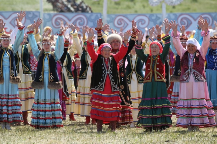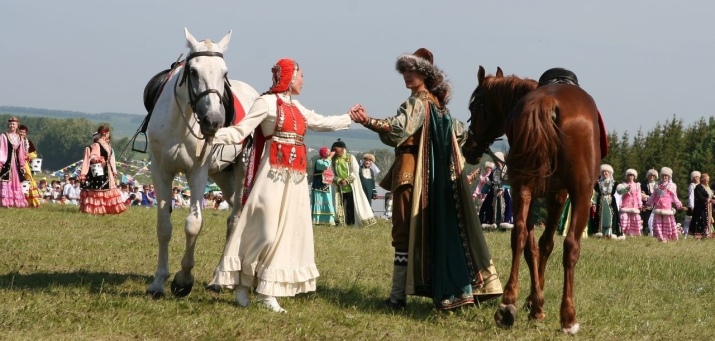 For sewing holiday outfits used many other shades. Celebrations at the festival have always meant a lot to the Bashkir people, so it is not surprising that everyone wanted to stand out as much as possible among the rest during the feast and traditional entertainment.