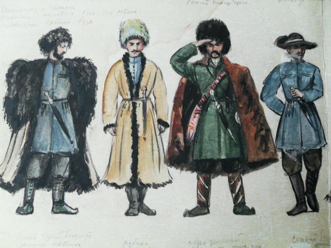 Circassian could be knee-length or even lower, to the ankle, the sleeves downward had an extension. She was tied with a narrow strap, on which a dagger or a pistol was hung.