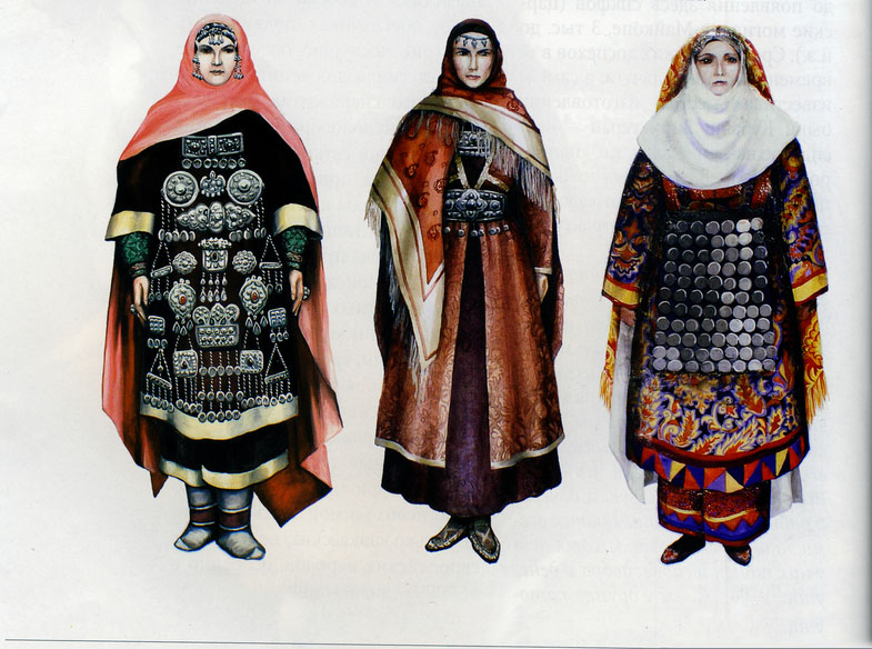 Women's suits characterized relatively loose fit. Residents of the plains preferred clothing made of silk: shirt, pants, dress, red saffiano shoes (goat leather), and a headscarf.
