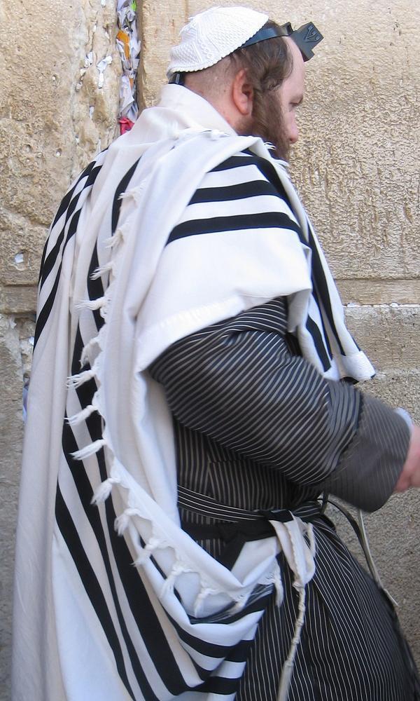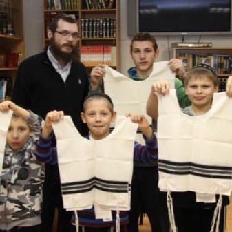 The cape has an official name - tallit katan. Without this element it is impossible to imagine the national men's clothing! The cape looks like a white rectangle of fabric with a wide slit for the head. At the edges are special tassels. On each hangs eight strands.